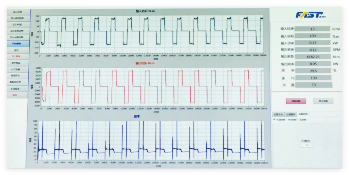 Xunjie Technology possesses torque inspection and testing instruments, utilizing a visualized worm gear torque testing platform. This platform is capable of testing multi-turn and partial-turn worm gears, directly obtaining the output torque and transmission efficiency of the worm gears. It can also conduct life testing and destructive testing of worm gears. The test data can be directly output in reports and curve graphs, supporting printing and electronic document storage. The visualized data allows for an intuitive understanding of various product performance metrics.